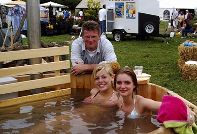 Ik met Roos en Abel op ons 'bijbaantje' ... we verkopen van die houten baden... haha wel leuk om te doen.